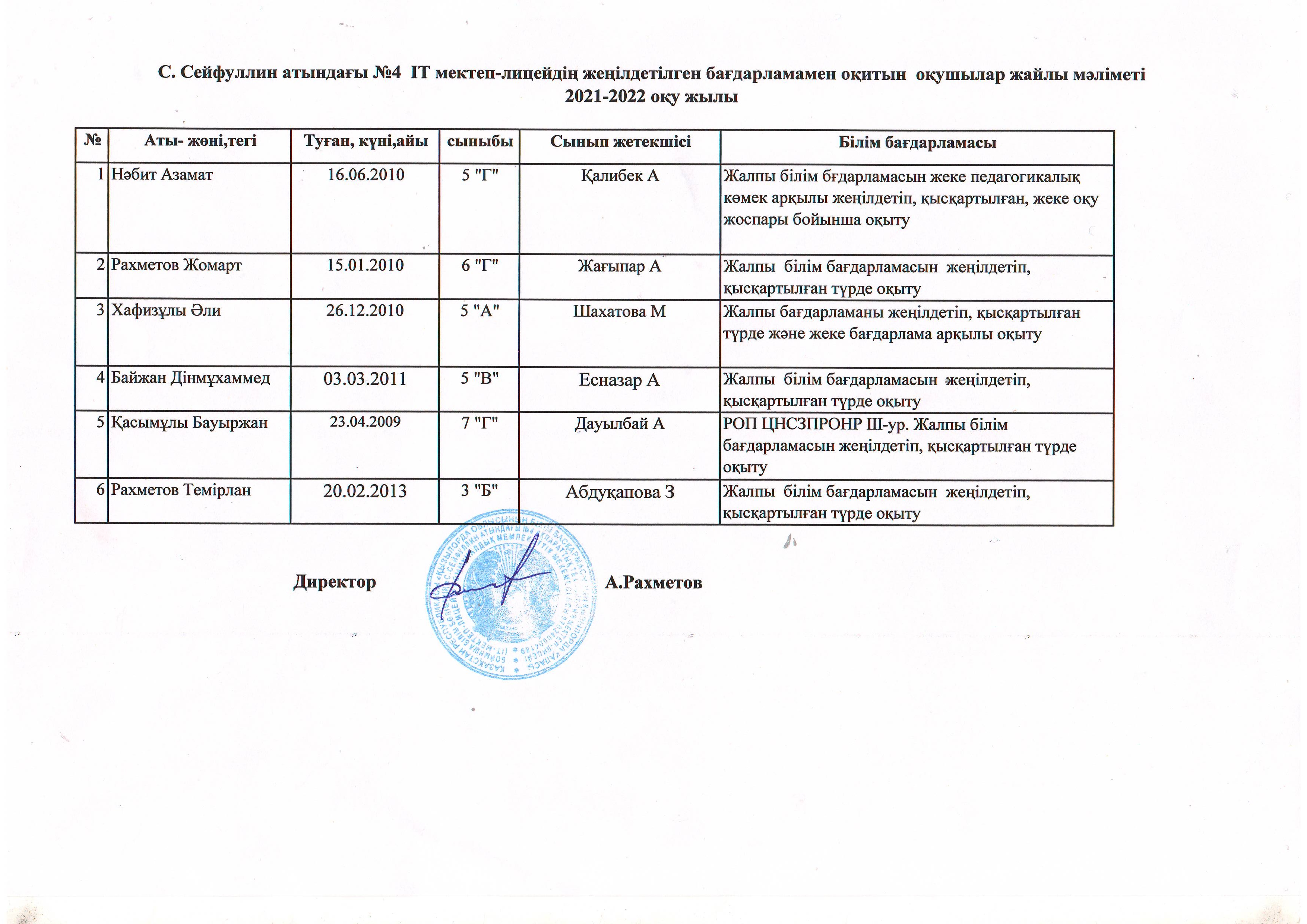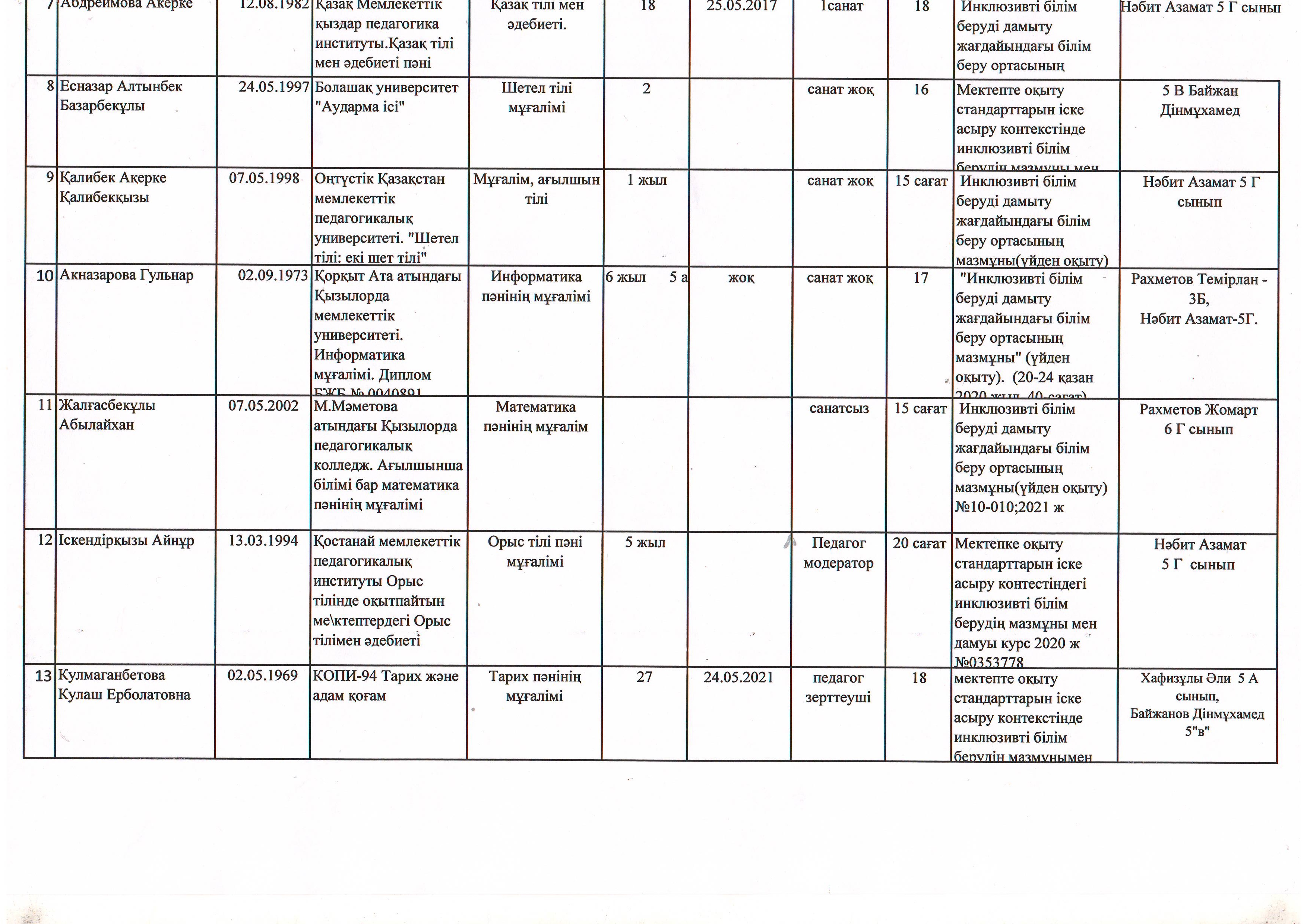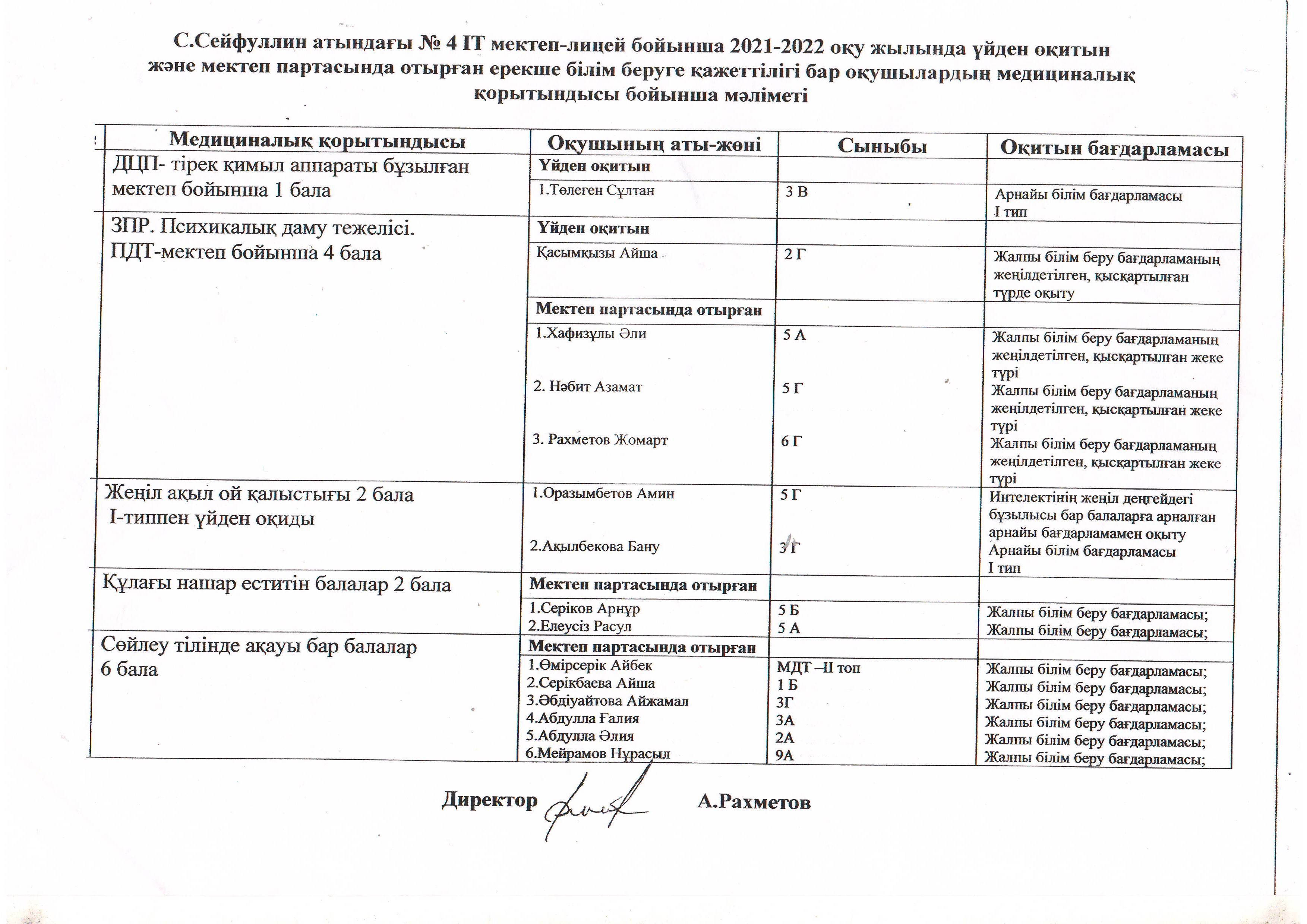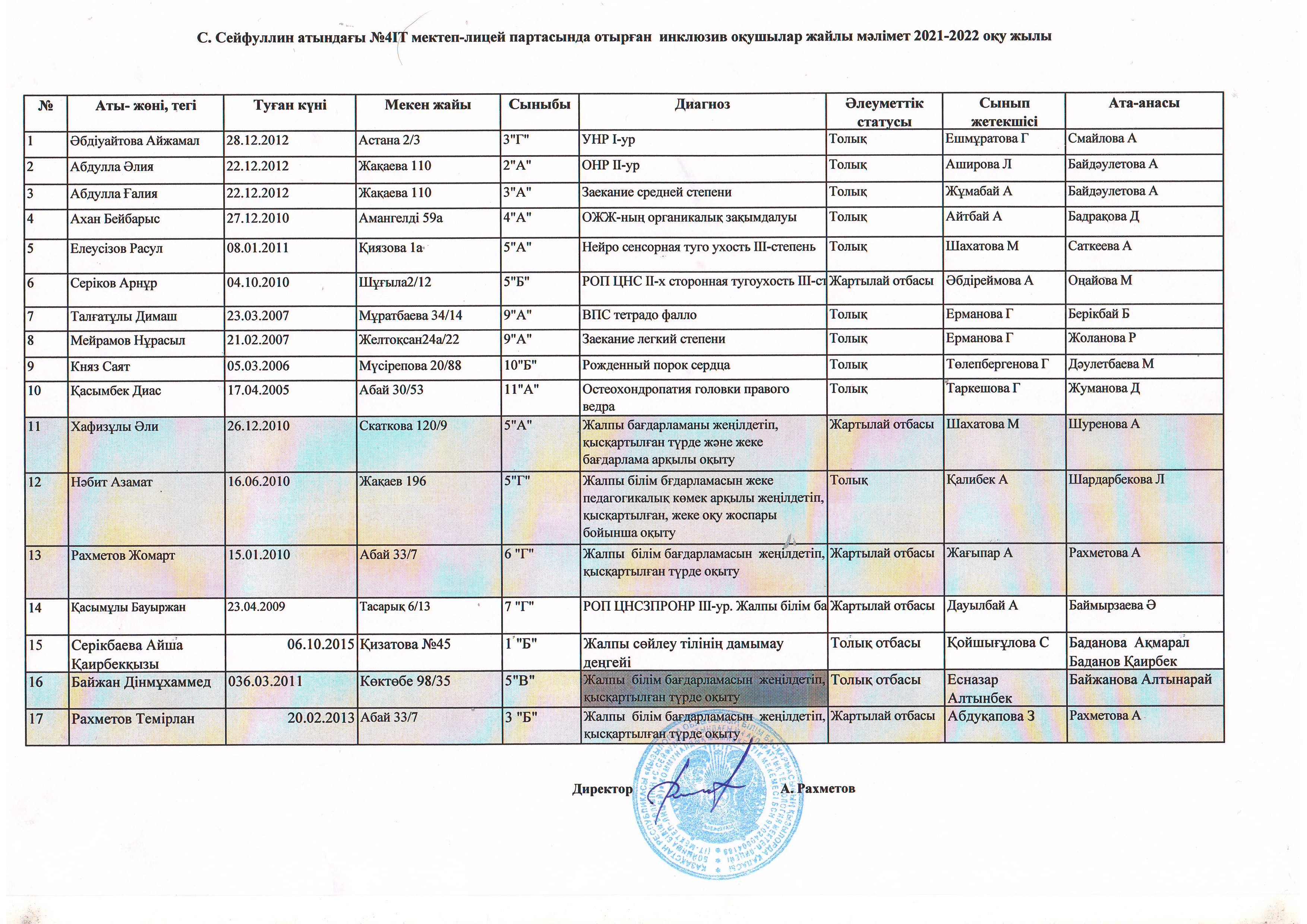 Инклюзив оқушылар жайлы мәлімет 2021-2022 оқу жылы
