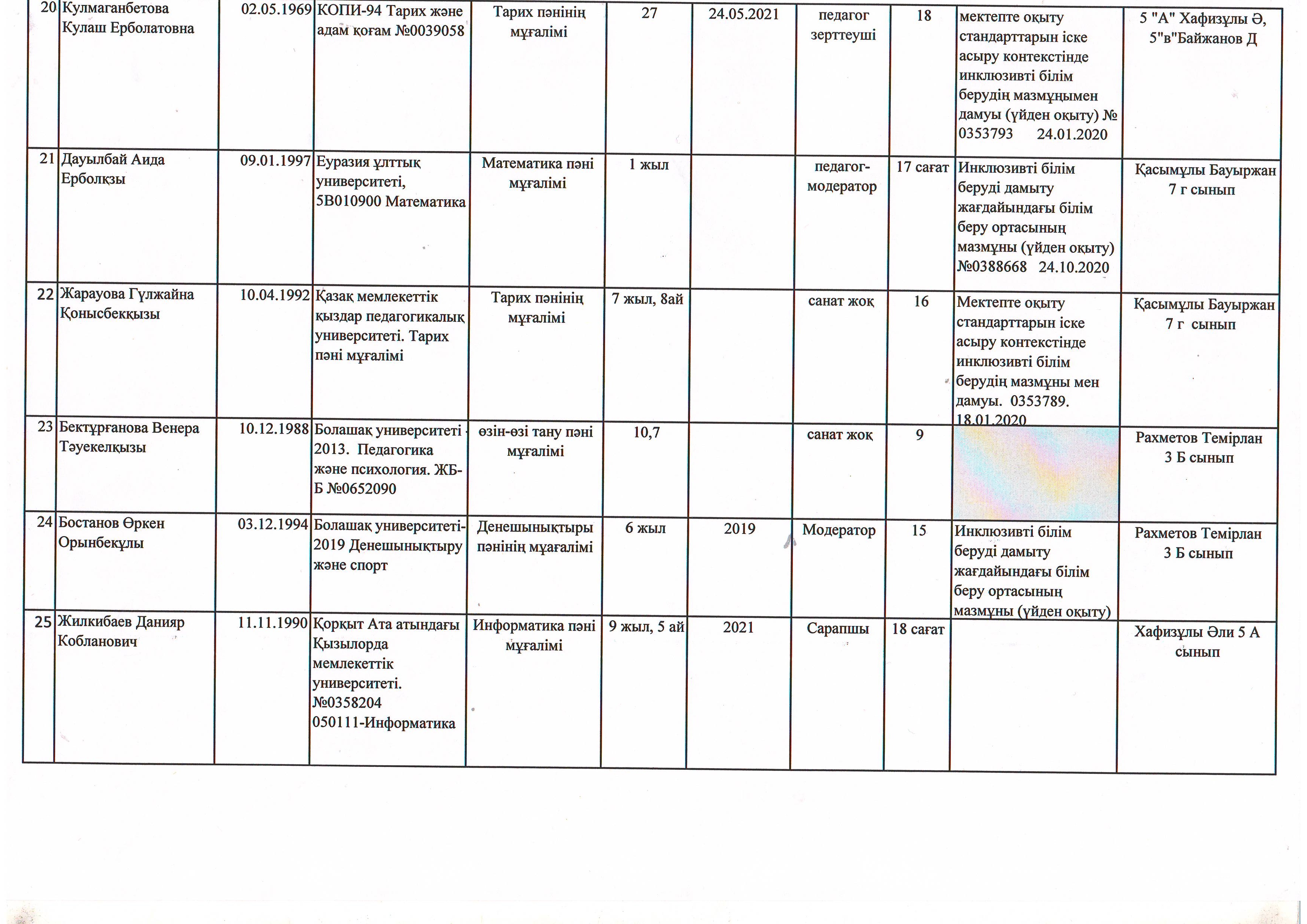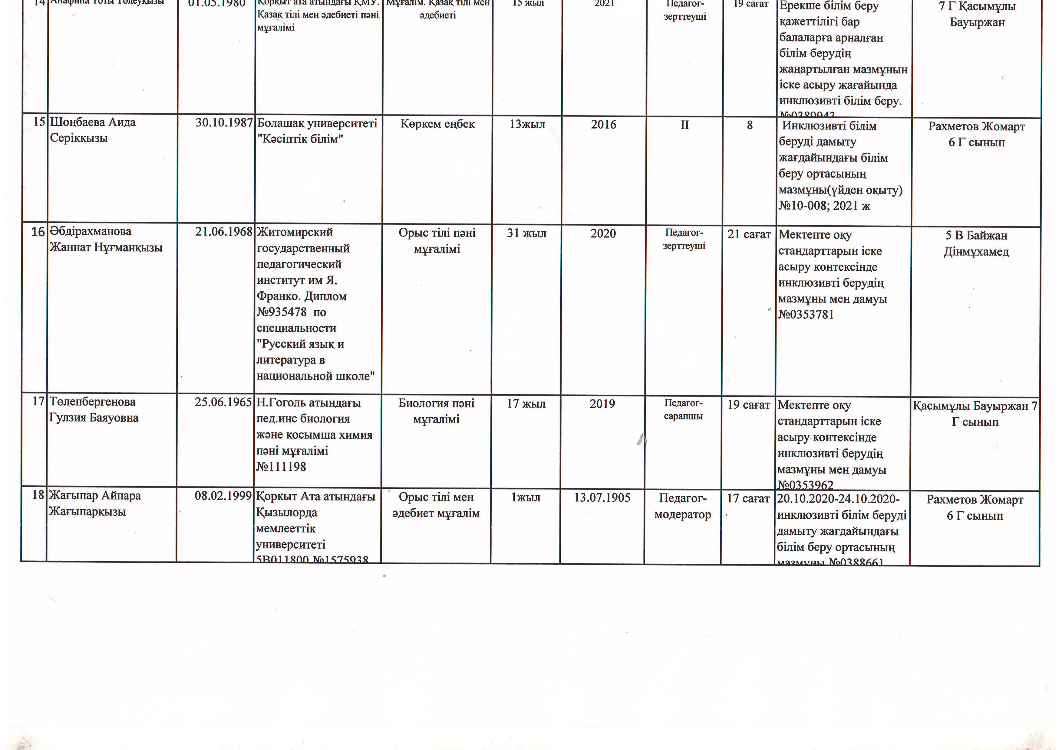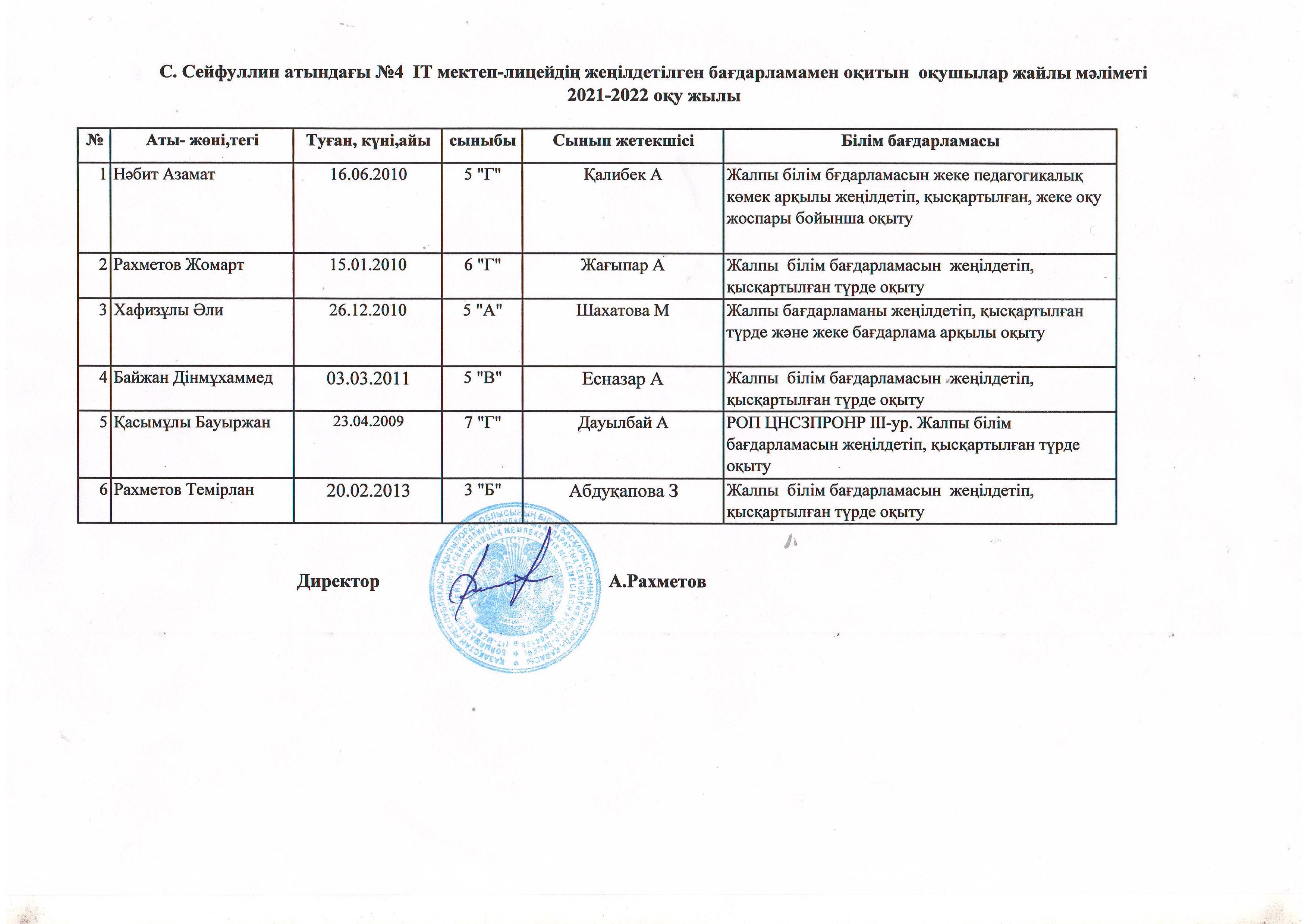 Инклюзив оқушылар жайлы мәлімет 2021-2022 оқу жылы