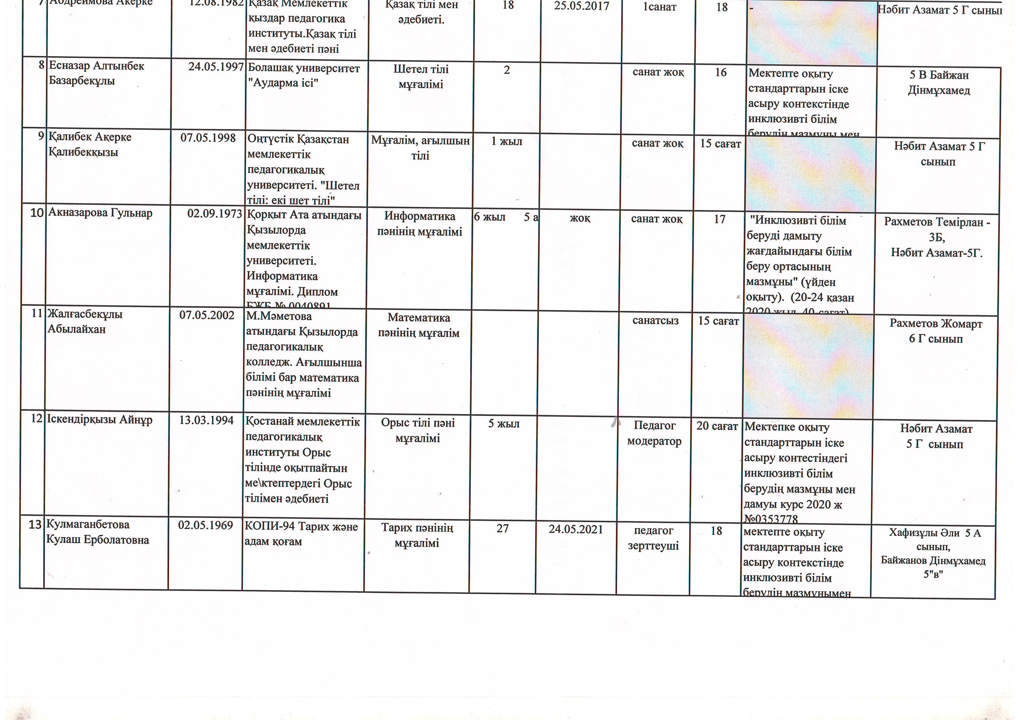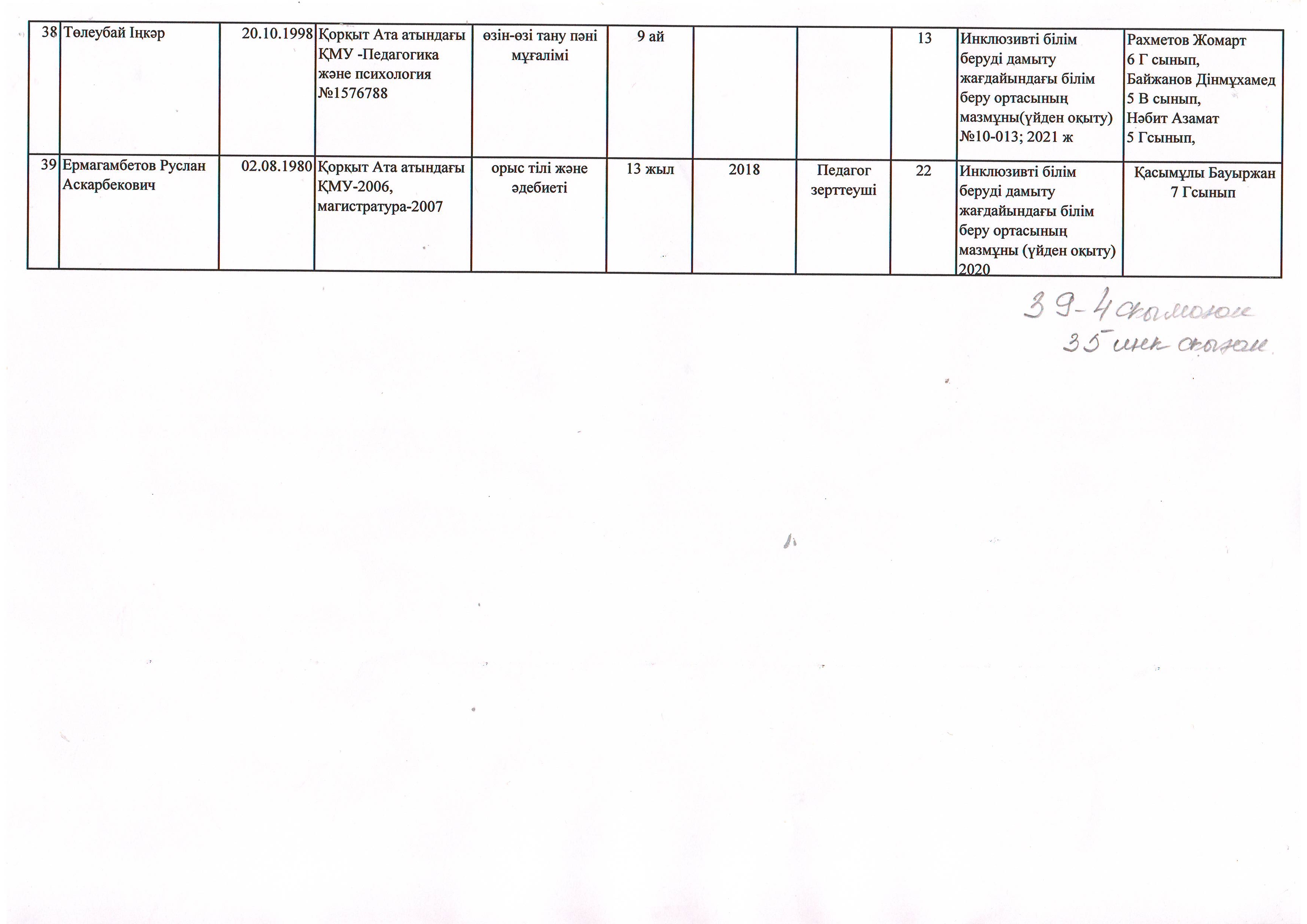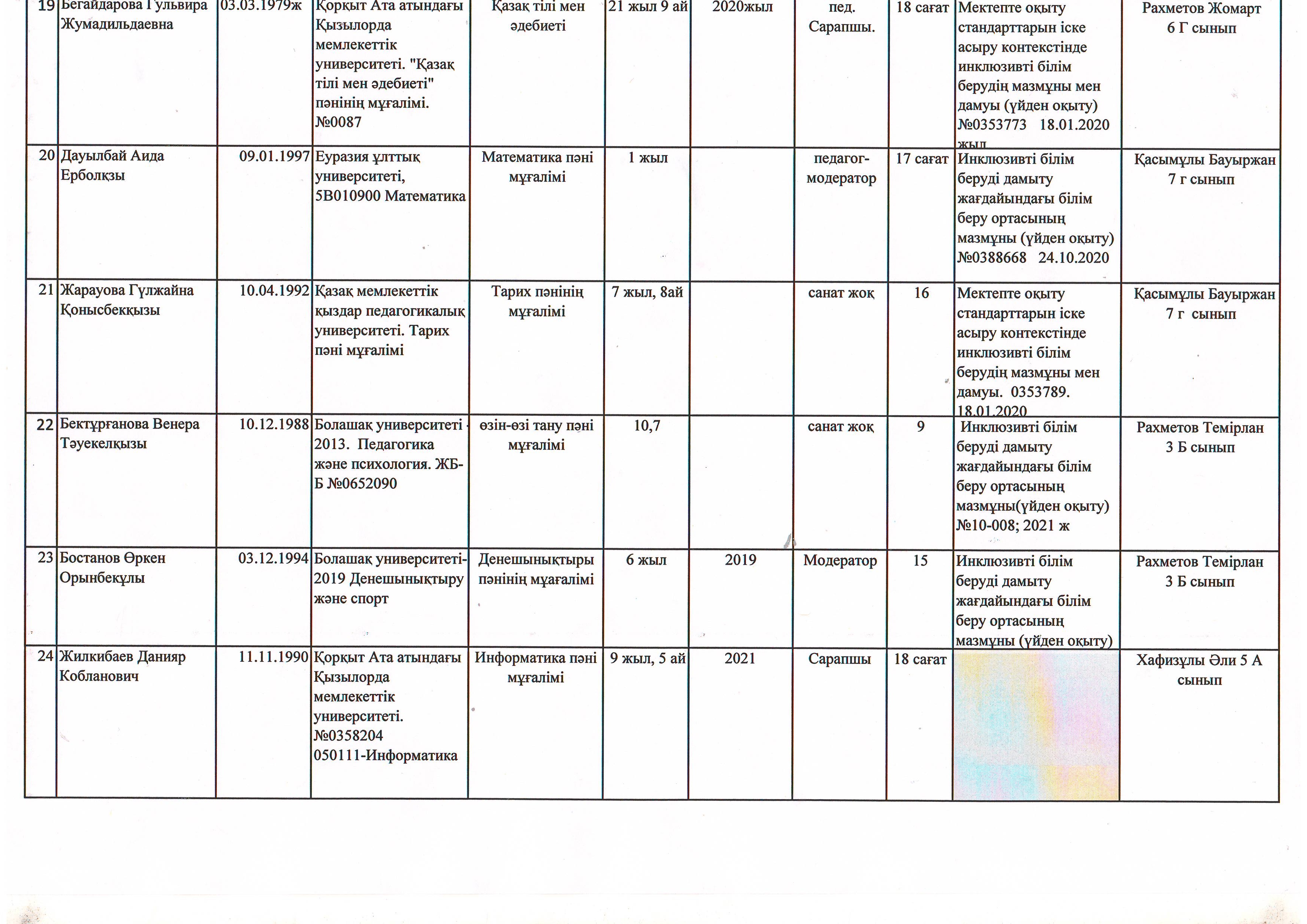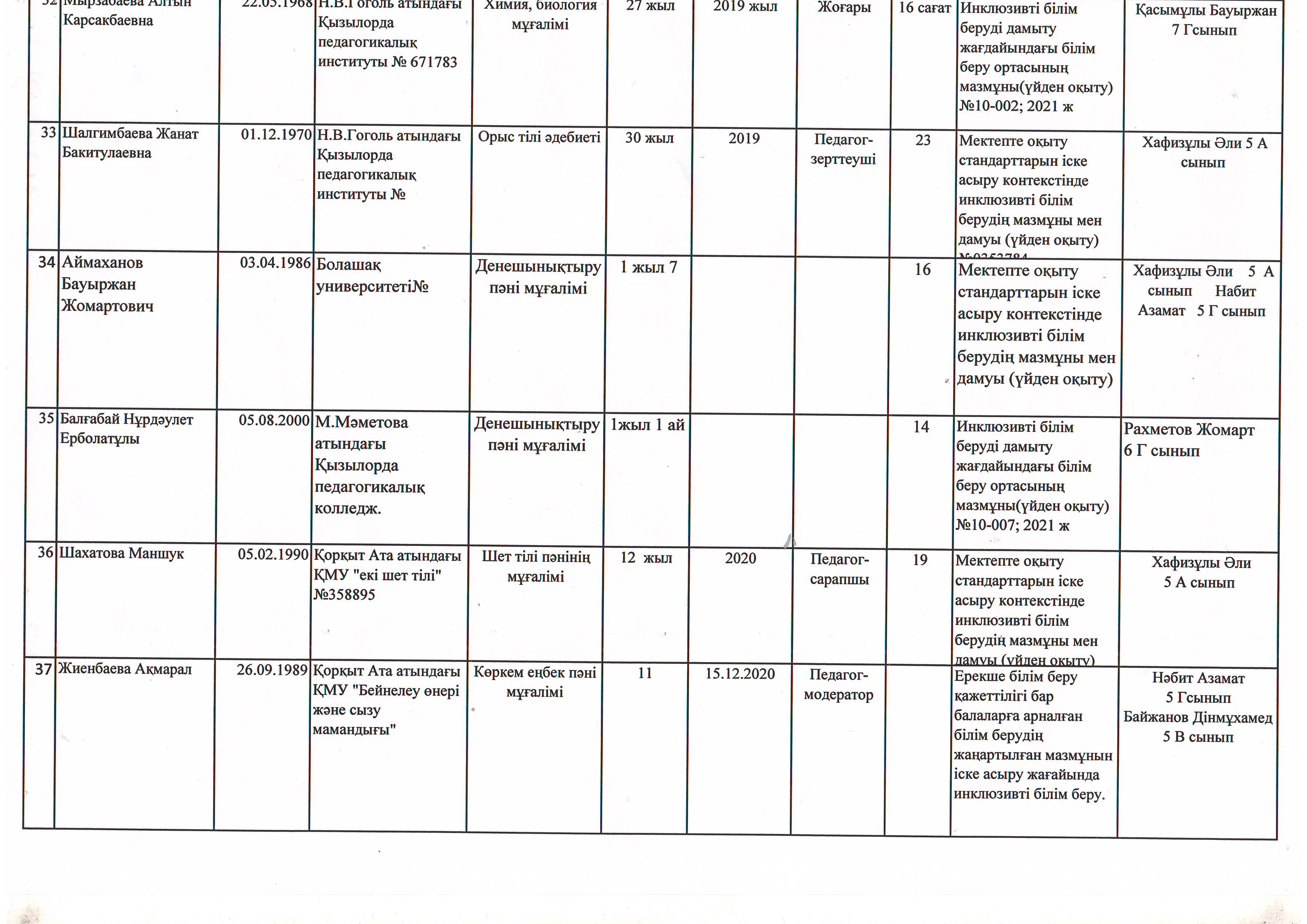 Инклюзив оқушылар жайлы мәлімет 2021-2022 оқу жылы